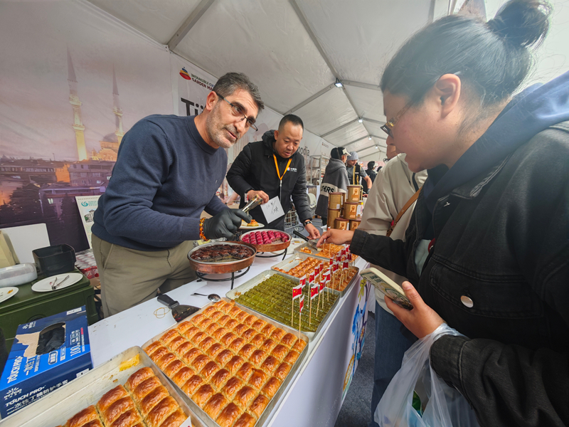 非遗花园市集上的土耳其特色甜品受到游客欢迎