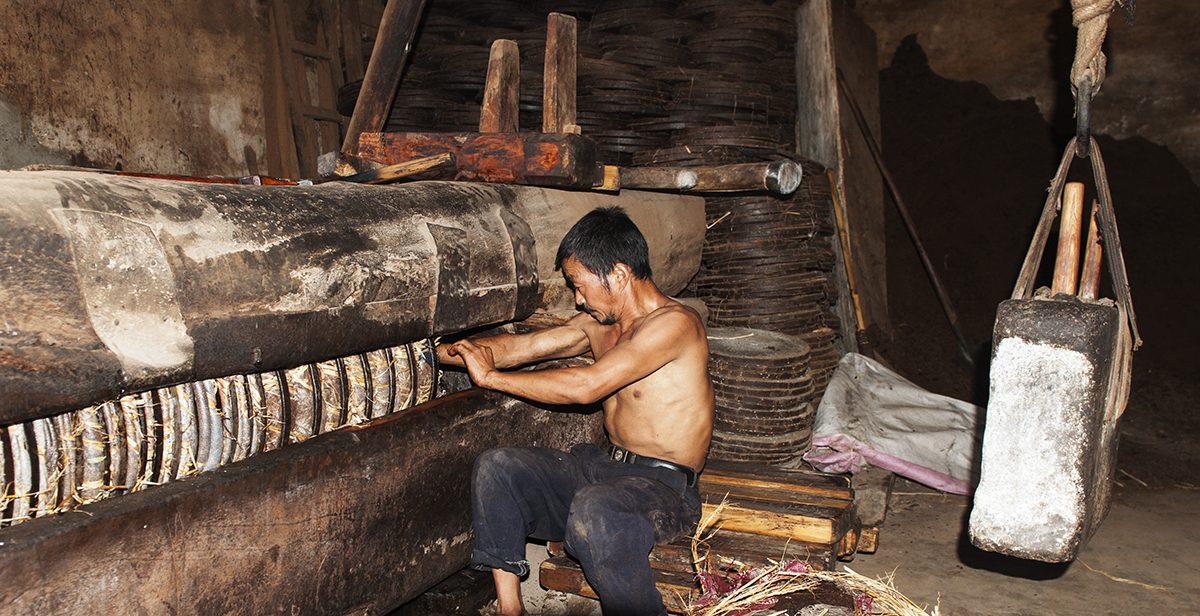 徽州木榨榨油从筛籽、车籽、炒籽、磨粉、蒸粉、踩饼、上榨、插楔、撞榨到接油有十多道工序。